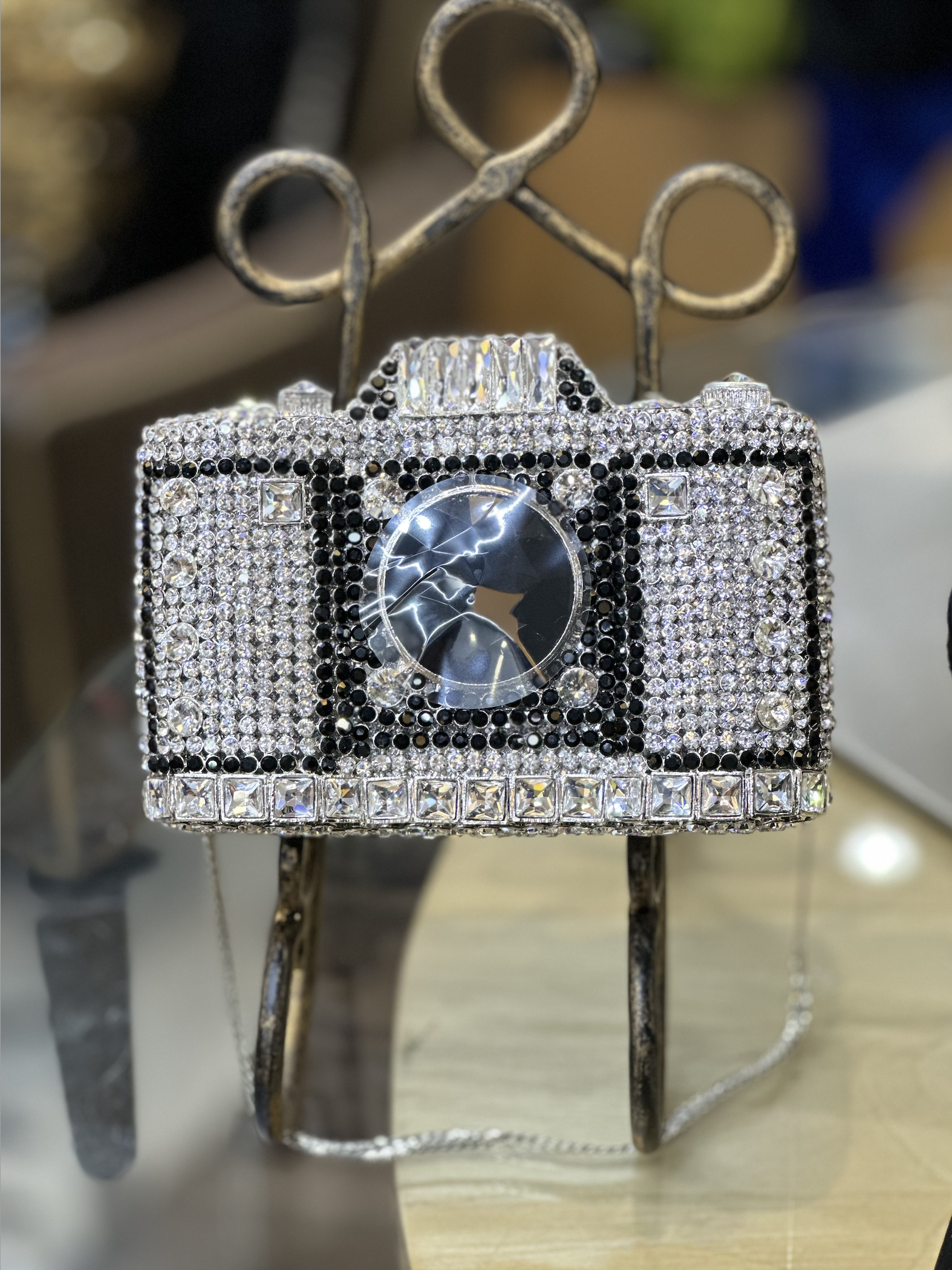 This dazzling ‘GlamCam’ handbag is the perfect accessory for any fashion-forward individual. The exterior of the bag is covered in sparkling rhinestones and shimmering crystals that catch the light and create dazzling effect. The compact design makes it easy to carry all of your essentials in style. Whether you’re heading out for a night on the town or just running errands, this sparkling ‘GlamCam’ handbag is sure to turn heads and add a touch of sparkle to any outfit.