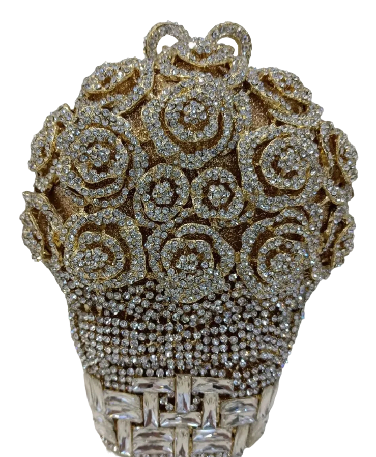 Inspired by nature’s most romantic flower, our ‘Glamorous Rose Petal’ handbag is an exquisite blend of elegance and femininity. This handbag is an enchanting accessory that beautifully captures the grace and beauty of blooming roses. ‘Glamorous Rose Petal’ features an array of sparkling rhinestones and crystals intricately arranged to resemble blooming roses. Its timeless appeal and feminine allure make it a must-have for those who appreciate the beauty of nature and seek a touch of romance in their fashion choices.