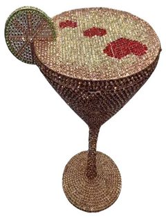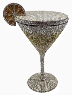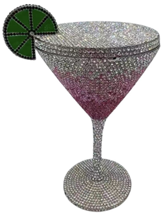 Step into the world of luxury with this stunning ‘Martin Glass’ handbag. Crafted with precision and attention to detail, this handbag dazzles with its intricate design and sparkling embellishments. The martini glass shape is a unique and eye-catching feature that sets this handbag apart from the rest.The body of the handbag is adorned with shimmering rhinestones, creating a mesmerizing effect that catches the light at every angle. The top of the martini glass is finished with a lemon that adds a pop of color and completes the look. Whether you’re sipping cocktails at a swanky rooftop bar, dancing the night away at a chic soiree or attending a black-tie event, this ‘Martini Glass’ handbag is the perfect finishing touch to any glamorous ensemble. Upgrade your accessory game with the bling ‘Martini Glass’ handbag and make an unforgettable impression wherever you go.