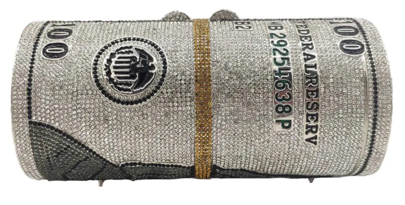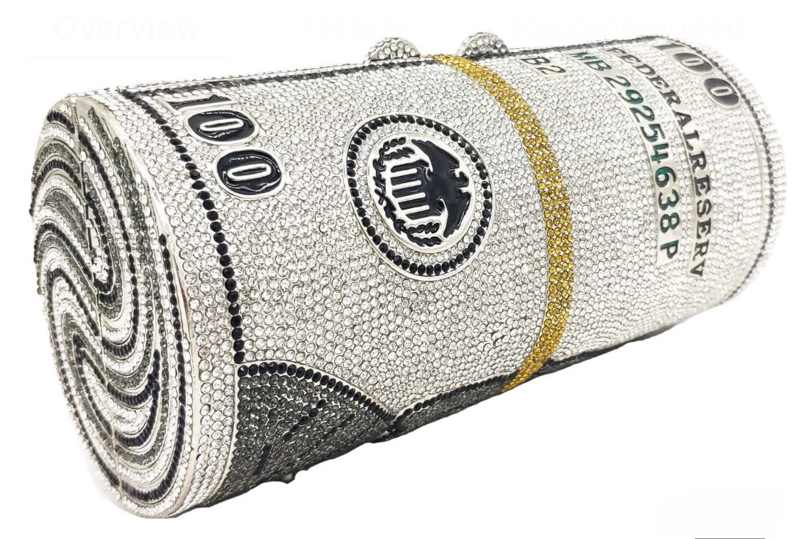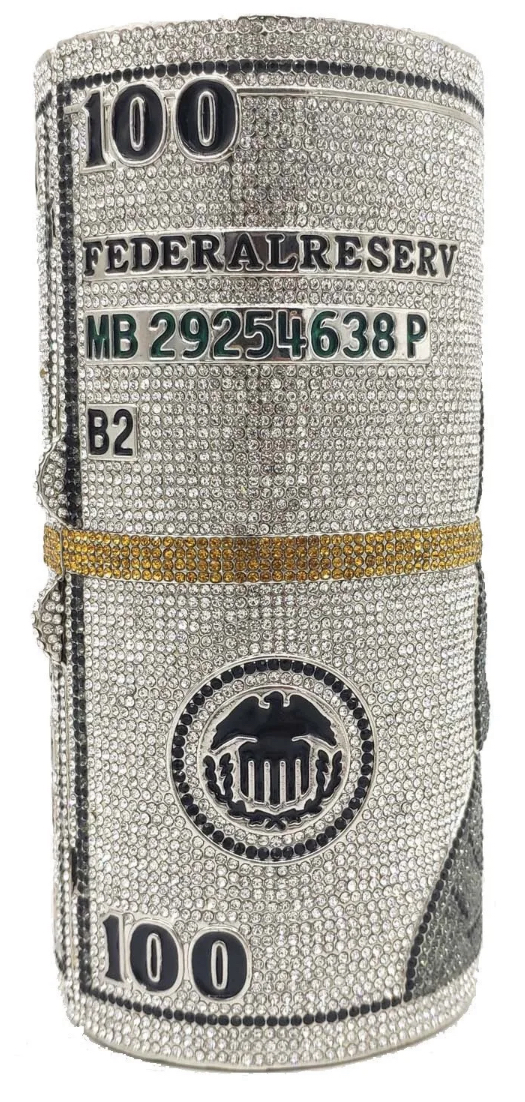 Our ‘Sparkling Benjamin’ Handbag is a dazzling accessory that combines luxury and style, perfect for making a statement at any event. This handbag features intricate rhinestone detail inspired by the elegance of a $100 bill, exuding opulence and glamour. ‘Sparkling Benjamin’ is a symbol of luxury, prosperity, and individuality, making it a standout piece in any fashion-forward wardrobe.