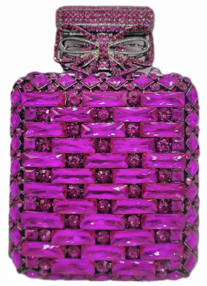 Step into a world of elegance and luxury with our exquisitely crafted ‘Sparkling Scentsational’ handbag. Adorned with shimmering crystals and sparkling accents, this handbag exudes glamour and allure with every glance. Indulge in the extravagance of our ‘Sparkling Scentsational’ handbag and elevate your style to new heights. Make a bold fashion statement and exude confidence with every swing of this exquisite handbag, a true symbol of sophistication and allure.
